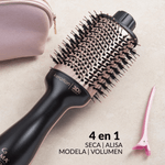 El cabezal con cerdas mixtas y dobles combina resistencia y firmeza con puntas redondeadas que modelan y definen tu cabello.