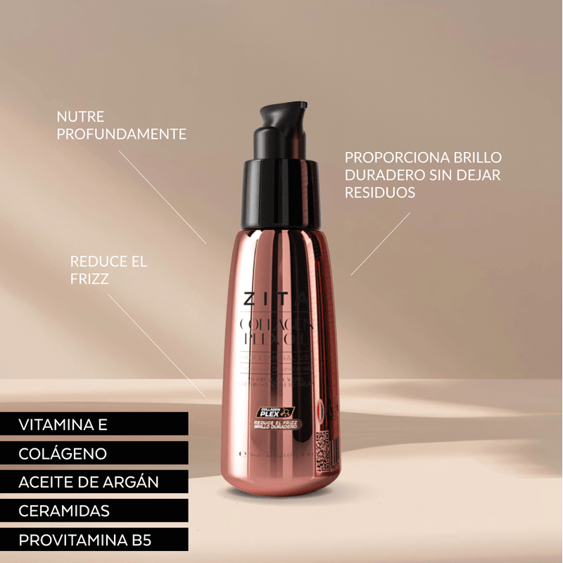 Es la tecnología exclusiva de ZITA que repara y fortalece el cabello desde el interior. Enriquecida con colágeno activo, proporciona aminoácidos esenciales que restauran los enlaces internos de la fibra capilar, mejorando su resistencia, elasticidad y brillo