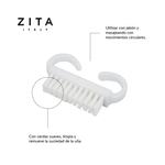 Con cerdas suaves, limpia y remueve la suciedad de la uña.