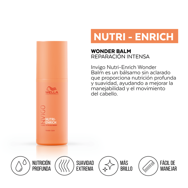 El bálsamo Invigo Nutri-Enrich Wonder Balm ofrece instantáneamente una nutrición duradera, suaviza y proporciona