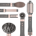 Incluye 8 cabezales intercambiables (rizadores, cepillo oval, redondo y paleta, difusor y boquilla secadora), además de un sistema Auto Cleaning que mantiene el filtro limpio y en óptimas condiciones.