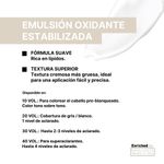 • Suavidad y Cuidado: La fórmula suave de nuestra emulsión garantiza una experiencia de coloración sin estrés, cuidando tu cabello en cada aplicación.