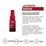 El Ultimate Repair Night Serum proporciona un cuidado intensivo durante la noche y ayuda a corregir visiblemente la falta de brillo, la sequedad y la rotura. Mientras dormís, su fórmula ayuda a proteger y revitalizar el cabello: el omega-9 hidrata y los polímeros defensores ayudan a protegerlo frente a factores estresantes nocturnos, como la fricción en la almohada.