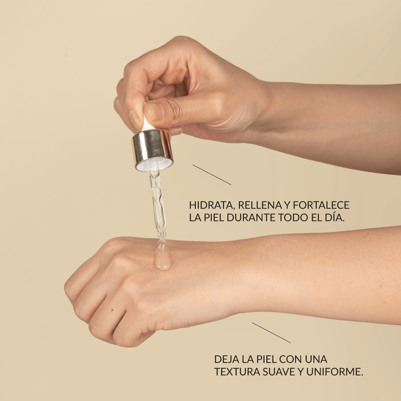 Apto para todo tipo de piel. Recomendado si buscás un sérum hidratante e iluminador para piel con opacidad, sequedad o señales de edad.