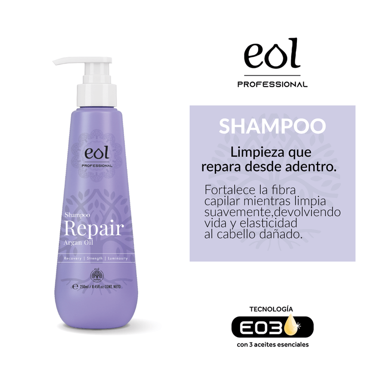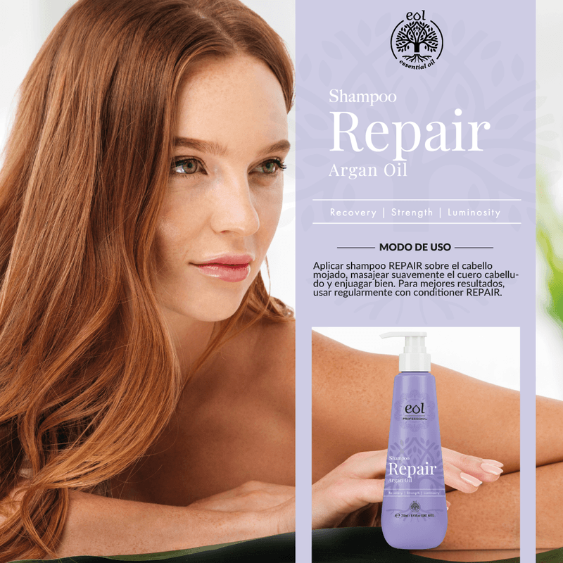 Fórmula reparadora que limpia suavemente, repara la fibra capilar y devuelve la fuerza, suavidad y brillo al cabello dañado o debilitado. Enriquecido con aceites naturales que nutren profundamente y protegen contra el quiebre y la resequedad. El poder reparador del Argán y los aceites naturales devuelve vitalidad a cabellos secos o dañados, restaurando fuerza, suavidad y brillo.