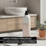 Nuestra fórmula avanzada no solo limpia de manera efectiva, sino que también ayuda a cerrar la cutícula del cabello después de la coloración, lo que contribuye a conservar el color vibrante y evitar la pérdida de brillo. Además, el pH optimizado de nuestro champú, con un bajo pH, potencia aún más su capacidad para proteger y prolongar el color del cabello teñido.