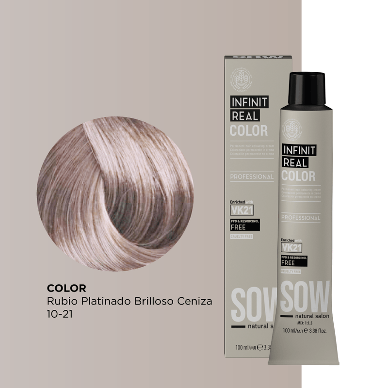 ColoracionTinturasSow Infinit Real Color Rubio Platinado Brilloso Ceniza 10-21 100Ml