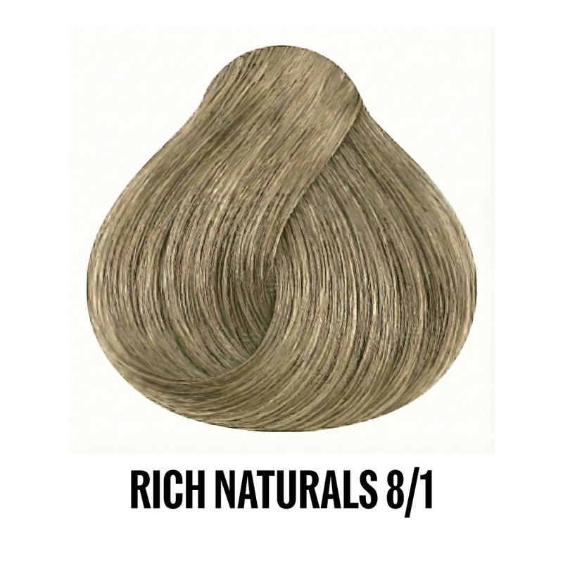 Resultados de color puros y equilibrados, con intensidad y un brillo naturales y un 100% de cobertura de canas.