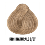 Resultados de color puros y equilibrados, con intensidad y un brillo naturales y un 100% de cobertura de canas.
