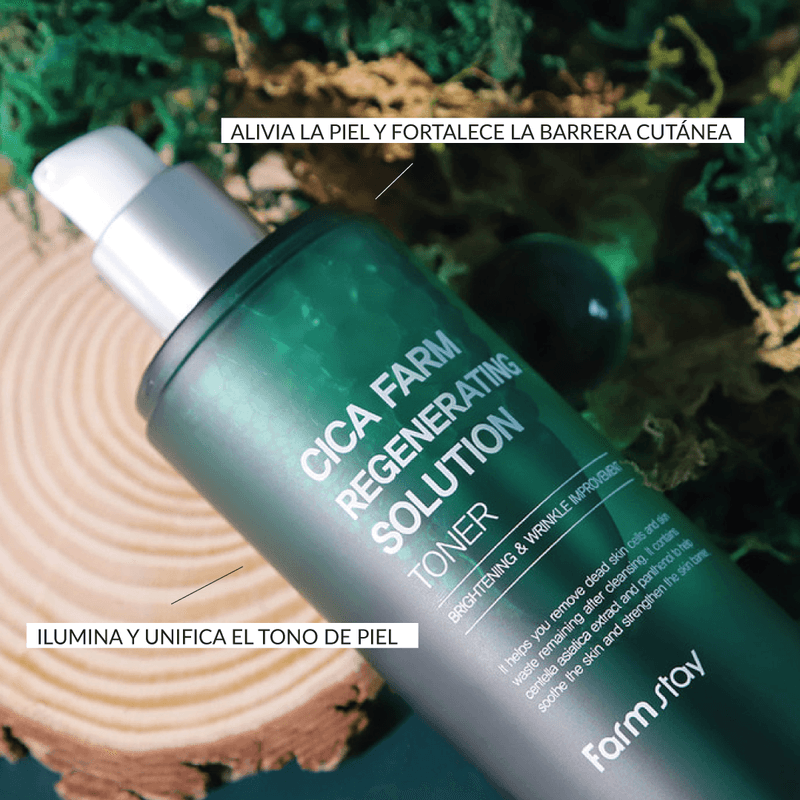 Farmstay Cica Farm Regenerating Solution Toner es un tónico facial formulado con CICA (centella asiática), presentado como solución regeneradora. Su formato de 200 ml está pensado para integrarse en la rutina de cuidado facial.