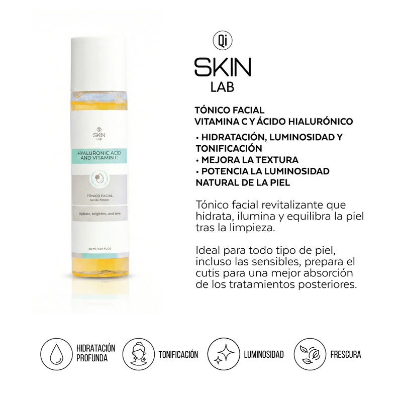 El Skin Lab Vitamin C and Hyaluronic Acid Toner 150 ml es un tónico facial formulado con Vitamina C y Ácido Hialurónico, diseñado para ayudar a hidratar, iluminar y tonificar la piel como parte de la rutina diaria de cuidado facial.