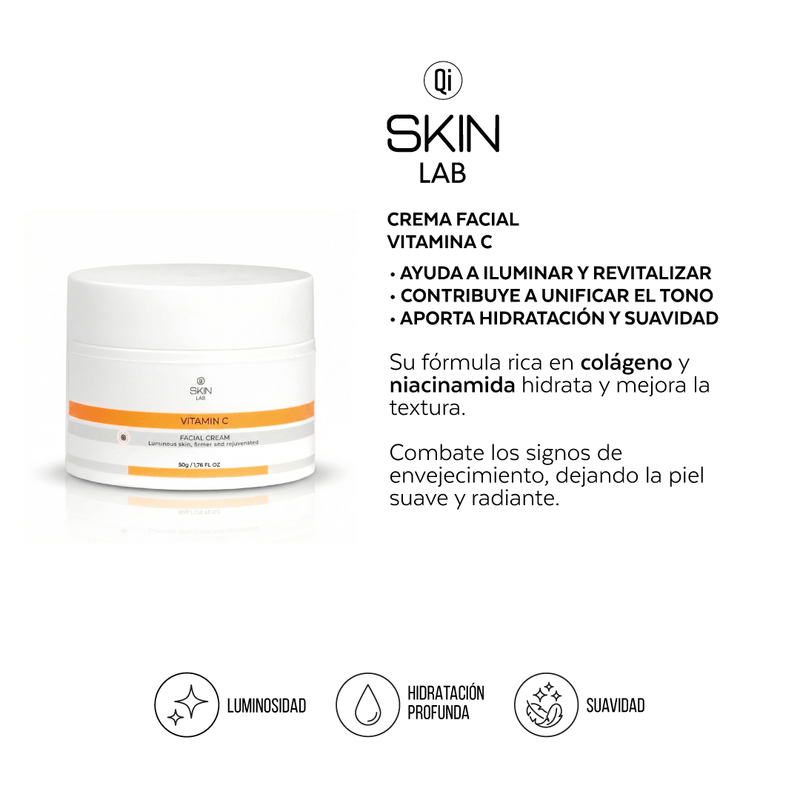 Vitamina C: potencia la luminosidad, protege contra el daño oxidativo y contribuye a un aspecto más radiante.